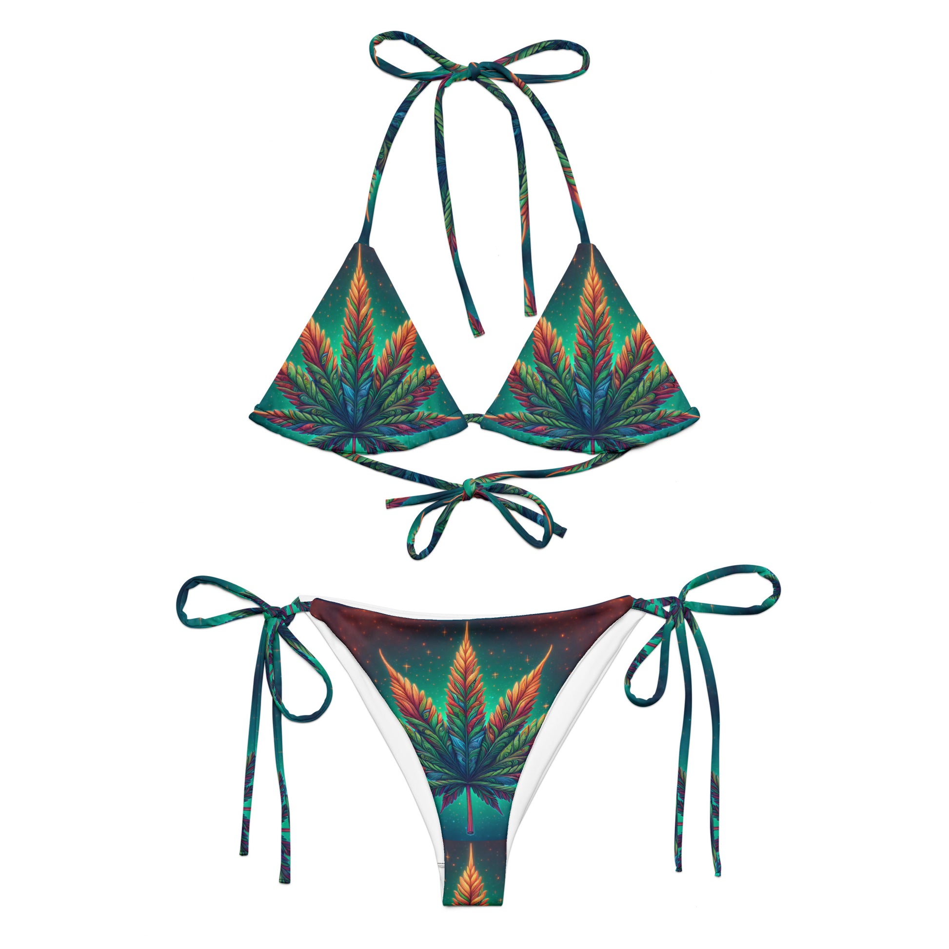 • To make your All-Over Print Recycled String Bikini last longer, thoroughly rinse it off after each use and get rid of any chlorine/salt residue.